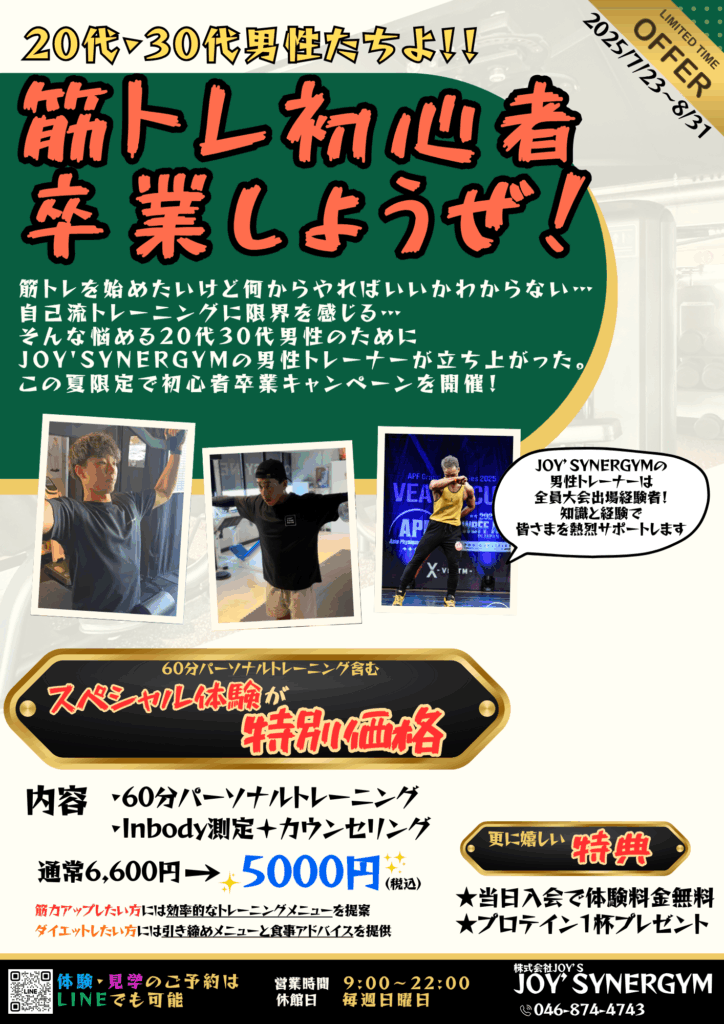 この夏、JOY’SYNERGYMで “筋トレ初心者卒業”しませんか? 🏋️♂️