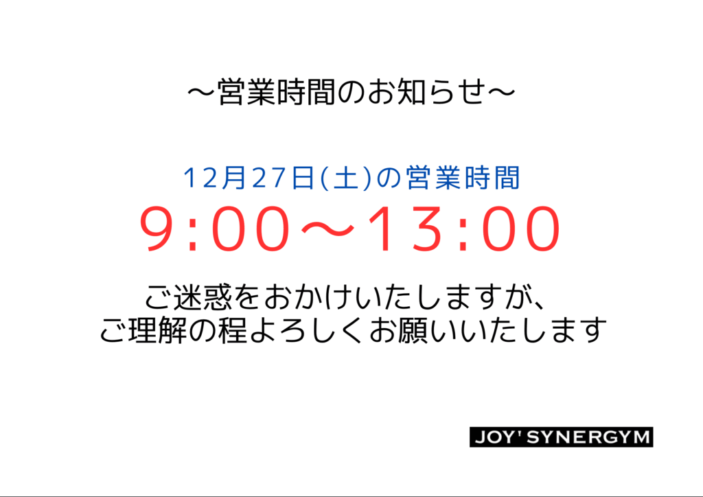 2025/12/27(土)営業時間9:00〜13:00に変更